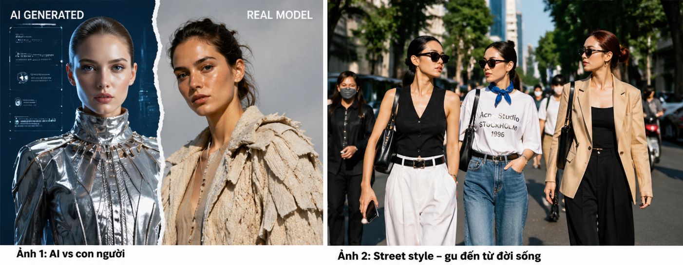 Dù AI phát triển nhanh, hành vi tiêu dùng lại không thay đổi mạnh như dự đoán. Người ta vẫn tìm cảm hứng từ: tạp chí, phong cách đường phố, người có ảnh hưởng. Không phải vì công nghệ chưa đủ tốt mà vì con người vẫn cần một điểm kết nối mang tính cảm xúc.