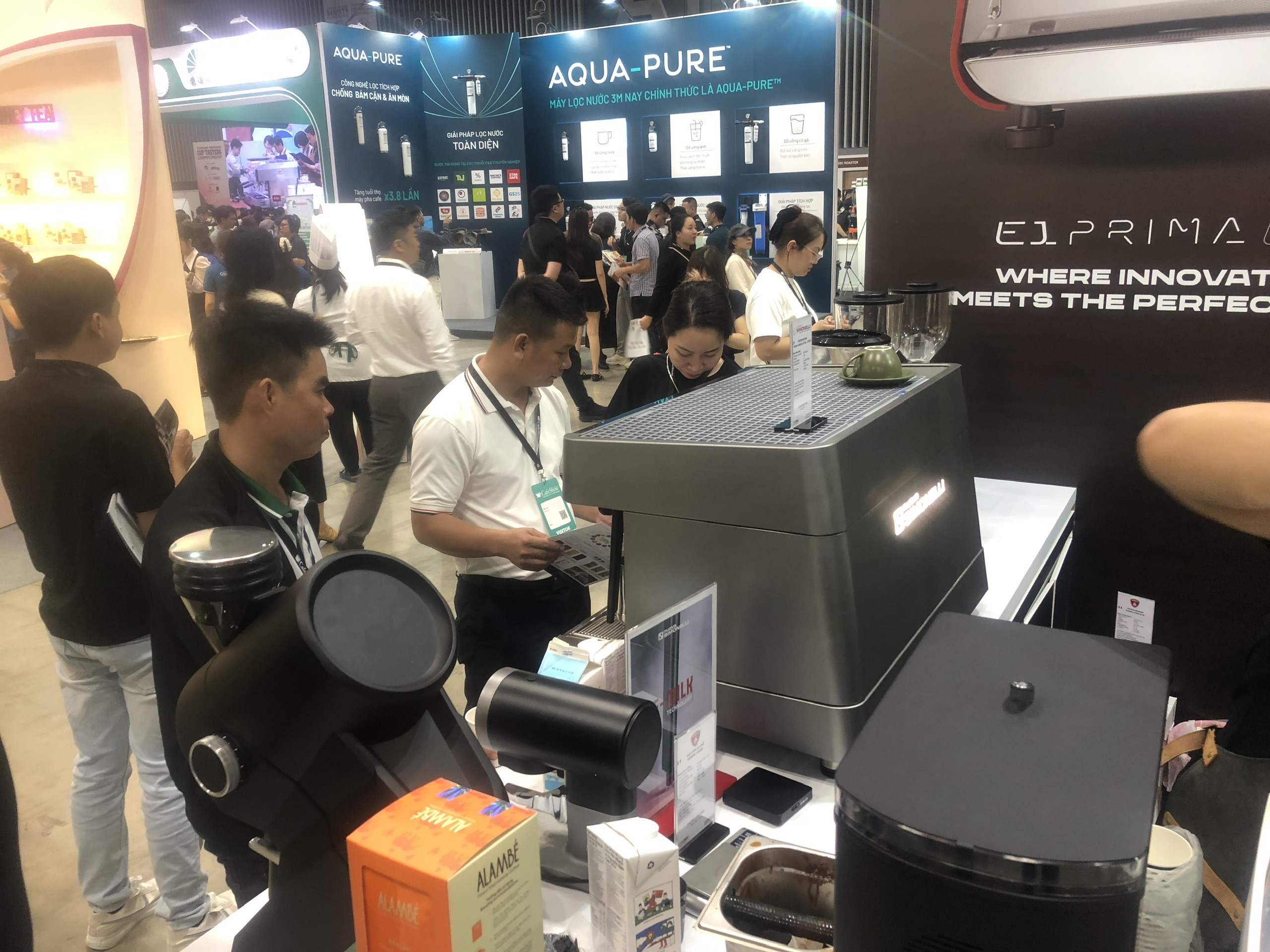 Tại khu vực trưng bày, các doanh nghiệp mang đến bức tranh đa chiều của thị trường F&B hiện đại, từ vùng nguyên liệu, nhà rang xay, đơn vị cung ứng, nhà phân phối cho đến các chuỗi cửa hàng. Những thương hiệu thiết bị hàng đầu thế giới như La Marzocco, Victoria Arduino, Nuova Simonelli, Sanremo hay Giesen được giới thiệu thông qua các nhà phân phối trong nước, cho thấy mức độ đầu tư ngày càng cao vào công nghệ và tiêu chuẩn vận hành.
