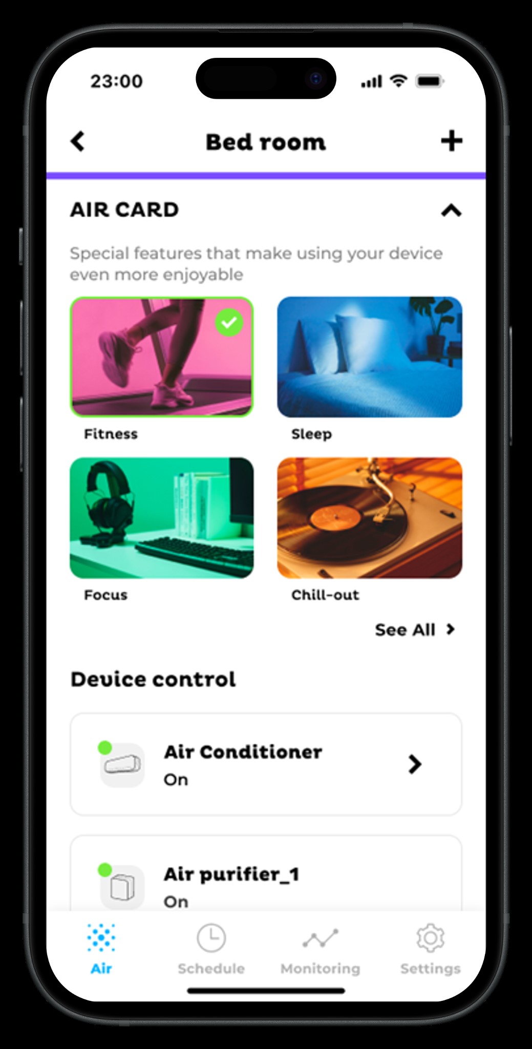 Điểm nổi bật của AIR CREATOR là khả năng tích hợp nhiều thiết bị trong cùng một hệ sinh thái thông qua AIR CARD, cho phép điều hòa và máy lọc không khí tự động đồng bộ theo từng nhu cầu sử dụng.