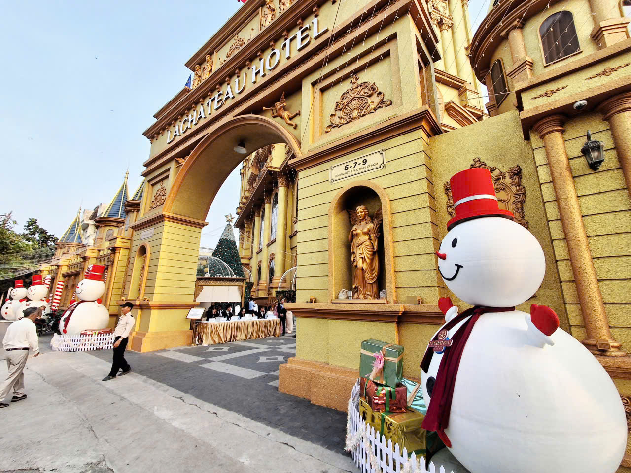 LaChateau được thiết kế với sự kết hợp giữa kiến trúc Pháp cổ điển và nghệ thuật chế tác thủ công… Từng chi tiết của “tòa lâu đài” đều được chăm chút kỹ lưỡng, từ các hoa văn tinh xảo, được chạm khắc trên cột trụ cho đến những bức phù điêu sống động dọc các bức tường. ỉnh tháp chóp nhọn dát vàng 24K lấp lánh dưới ánh nắng, kết hợp những mái vòm cong uốn lượn, tạo nên hình ảnh lộng lẫy, tựa như một viên ngọc quý giữa lòng Thành phố.