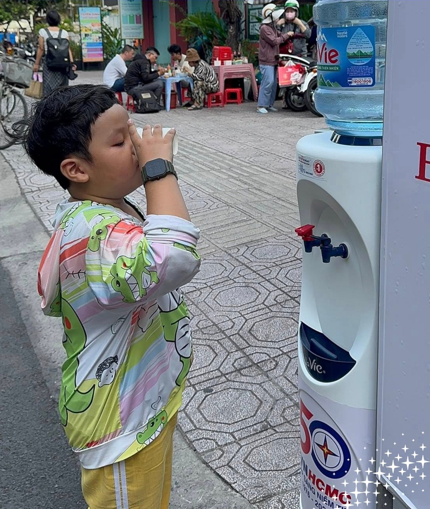 Thực tế, những “trạm nước” tự phát do người dân đặt trước cửa nhà đã có nhiều năm nay. Có nơi chỉ là một thùng nước suối kèm tấm bảng viết tay “uống nước miễn phí”, chỗ khác là bình trà đá với vài chiếc ly nhựa đặt sát vỉa hè để ai đi ngang cũng có thể dừng lại. Vào những khung giờ nắng gắt, không khó để bắt gặp cảnh vài ba người ghé lại uống vội, lau mồ hôi rồi tiếp tục hành trình.