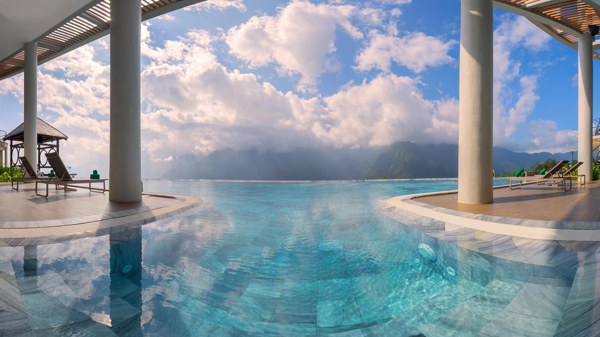Hồ bơi vô cực là một trong những điểm nhấn nổi bật, nơi làn nước mát hòa vào mây trời, tạo cảm giác như đang “trôi” giữa đại ngàn. Bên cạnh đó, khu spa – xông hơi, hồ jacuzzi nước ấm hay sky bar với tầm nhìn panorama mang đến những phút giây thư giãn trọn vẹn.