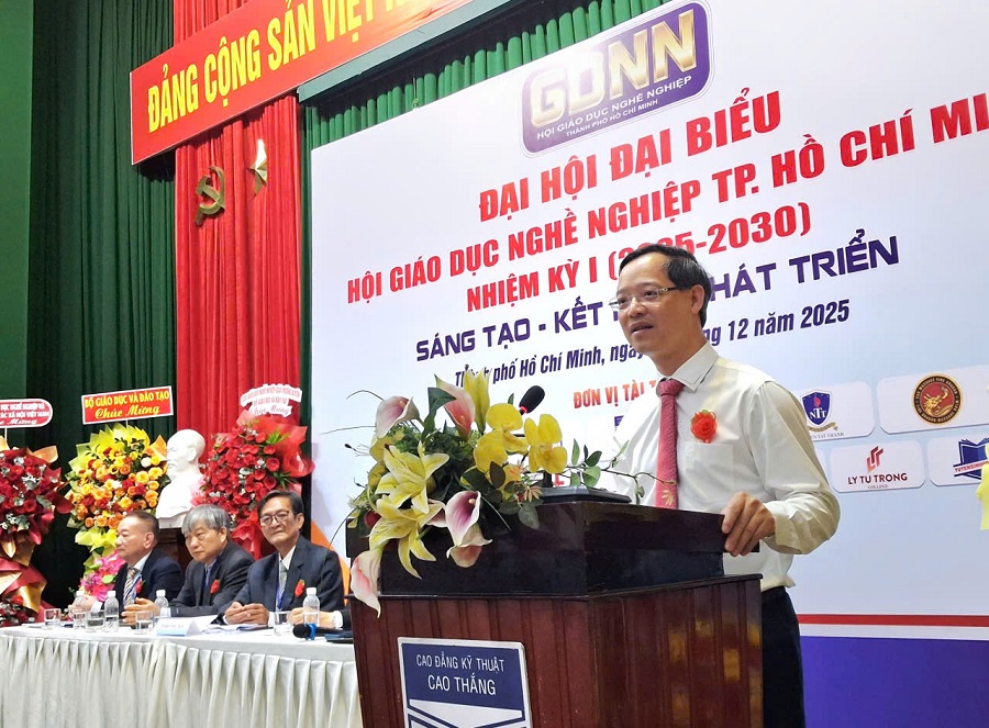 Sáng ngày 6/12, Đại hội Đại biểu Hội GDNN TP. Hồ Chí Minh nhiệm kỳ I (2025 - 2030) đã diễn ra tại Trường Cao đẳng Kỹ thuật Cao Thắng. Gần 200 đại biểu đại diện cho các Cơ sở giáo dục nghề nghiệp, doanh nghiệp, Bộ GD&ĐT, Liên hiệp các Hội Khoa học - Kỹ thuật và Sở GD&ĐT TP. Hồ Chí Minh đã tham dự đại hội.