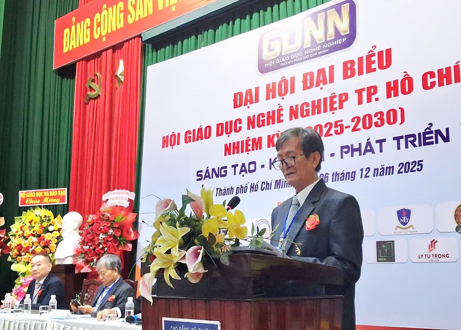 Phát biểu khai mạc, NGƯT. Ths Lâm Văn Quản, Chủ tịch Hội nhiệm kỳ 2020 - 2025 cho rằng, nhiệm kỳ qua, dù chịu tác động nặng nề của đại dịch và biến động kinh tế, Hội GDNN TP. Hồ Chí Minh giữ vững vai trò kết nối và đồng hành cùng sự phát triển của Thành phố. Đặc biệt là vai trò của Hội trong kết nối hệ sinh thái giáo dục nghề nghiệp và đáp ứng nhu cầu phát triển nguồn nhân lực chất lượng cao của Thành phố.