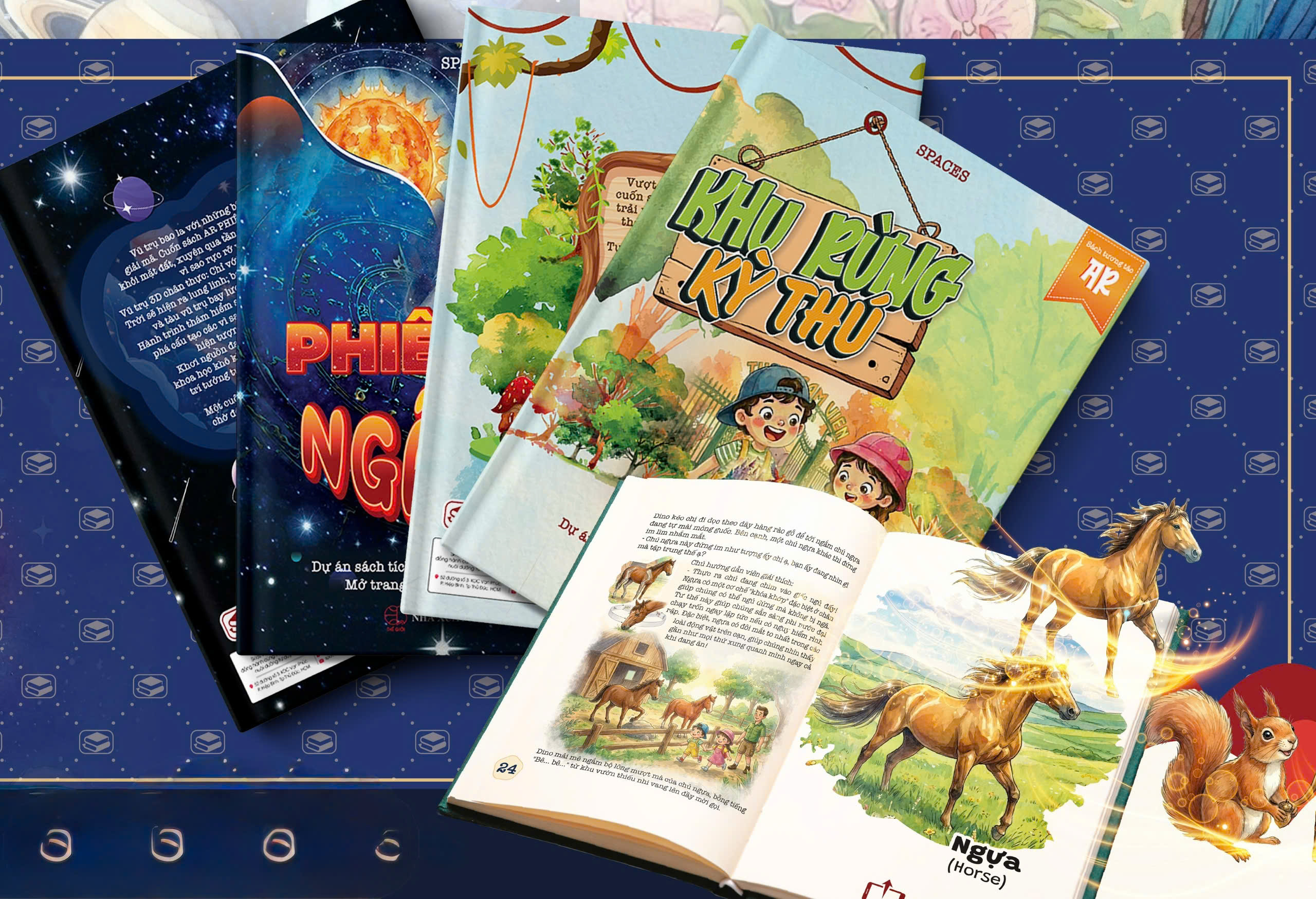 Bộ sách gồm hai ấn phẩm nổi bật là “Phiêu lưu Ngân hà” và “Khu rừng kỳ thú”, được thiết kế kết hợp giữa nội dung sách in và công nghệ thực tế tăng cường (AR). Với công nghệ này, khi quét qua các trang sách bằng thiết bị thông minh, hình ảnh sẽ “sống dậy” dưới dạng mô hình 3D, kèm âm thanh và tương tác trực quan.