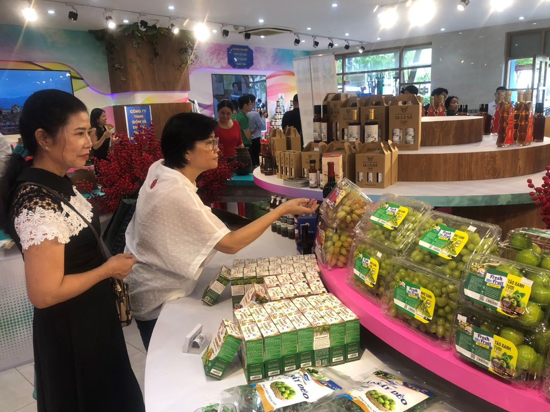 Sự kiện còn có gian hàng của Hợp tác xã Xuân Hải – đơn vị sở hữu 38 hecta nho và táo theo tiêu chuẩn VietGAP, sản lượng mỗi năm hơn 1.700 tấn. Ông Trần Cao Tiên, Giám đốc hợp tác xã, chia sẻ dù có chứng nhận OCOP 4 sao nhưng 70%-80% sản lượng vẫn bán qua thương lái. "Chúng tôi kỳ vọng tuần lễ sẽ giúp kết nối với hệ thống phân phối ổn định, giúp nông dân yên tâm sản xuất" - ông Tiên bày tỏ.
