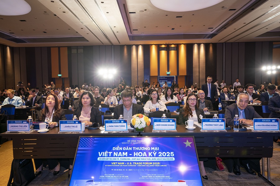 Ngày 10/12, nhân kỷ niệm 30 năm bình thường hóa quan hệ Việt Nam - Hoa Kỳ và 25 năm ký kết Hiệp định Thương mại song phương (BTA), Vụ Phát triển thị trường nước ngoài (Bộ Công Thương) phối hợp với Phòng Thương mại Hoa Kỳ tại Việt Nam (AmCham Việt Nam) tổ chức Diễn đàn Thương mại Việt Nam - Hoa Kỳ 2025, với chủ đề “30 năm hợp tác kinh tế, thương mại - Vượt qua thách thức, bước vào kỷ nguyên mới” diễn ra tại TP. Hồ Chí Minh.