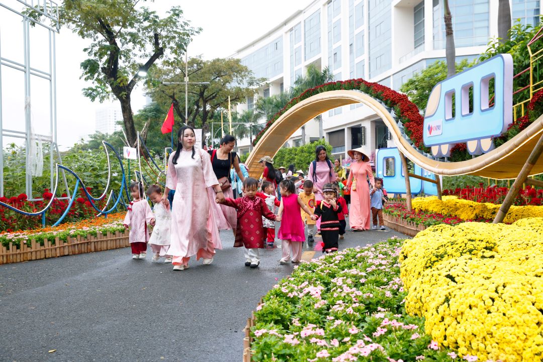 Hội hoa xuân Phú Mỹ Hưng Tết Bính Ngọ 2026 tạo điểm nhấn mới khi lần đầu tiên đưa hình ảnh tuyến metro cùng câu chuyện kết nối vùng miền vào thiết kế đường hoa. Sự kiện diễn ra từ ngày 11 đến 20/2 (24 tháng Chạp đến mùng 4 Tết) dọc Hồ Bán Nguyệt với chủ đề “Xuân Gắn Kết”, mang đến không gian du xuân hiện đại nhưng vẫn đậm bản sắc truyền thống.