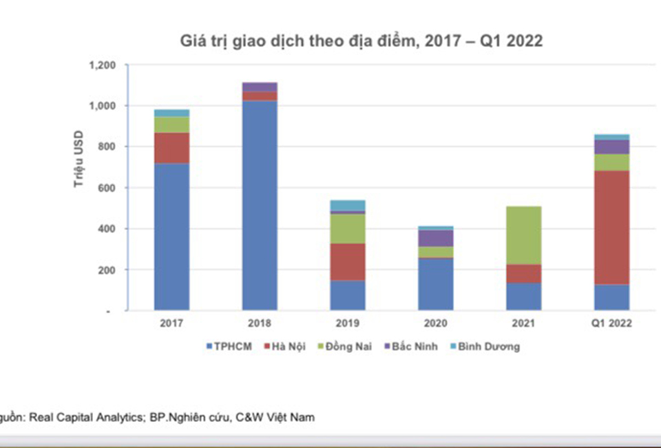 Trong 3 tháng đầu năm 2022, nhà đầu tư, giới doanh nghiệp bất động sản đã chi khoảng 900 triệu đô la Mỹ để thâu tóm các dự án, gần bằng con số ghi nhận được trong cả năm 2017 và vượt xa giao dịch của 3 năm vừa qua.