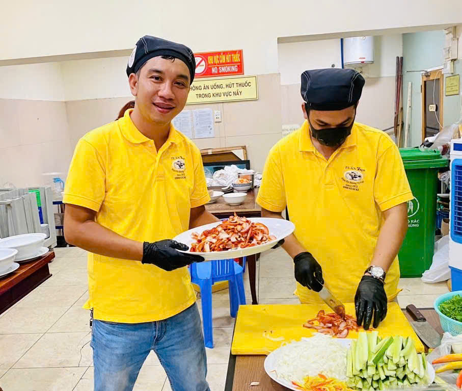 Ở khu vực Thủ Đức, bánh mì Tuấn 7 Kẹo lại ghi dấu bằng sự đa dạng và đậm chất gia truyền. Anh Nguyễn Thanh Tuấn, đại diện tiệm bánh mì Tuấn 7 Kẹo, cho biết mỗi ổ bánh mì là sự kết hợp của nhiều công đoạn chuẩn bị kỹ lưỡng từ sáng sớm. “Tiệm tôi nổi tiếng nhờ nước chan riêng. Nguyên liệu làm tới đâu bán tới đó, không để qua đêm. Tôi dậy từ rất sớm để chuẩn bị, nên bánh mì lúc nào cũng nóng, thơm, khách ăn là cảm nhận được ngay”, anh Tuấn chia sẻ. Ngoài các loại nhân truyền thống, tiệm còn phục vụ thêm bò kho, phá lấu, xôi ăn kèm bánh mì, tạo nên sự phong phú cho thực khách.