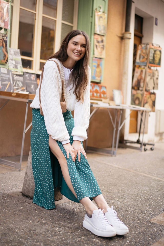 Những mẫu váy dài nhẹ nhàng với gam màu đơn sắc hoặc họa tiết hoa nhí, chấm bi đều phù hợp với tiết trời thu lãng mạn