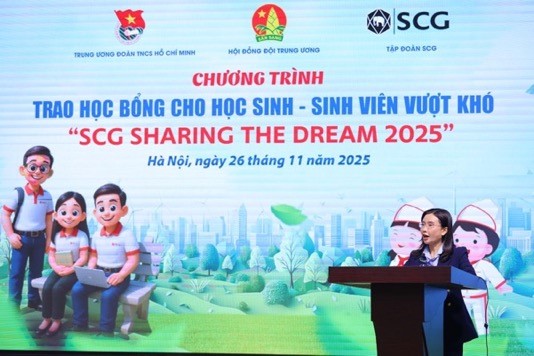 Bà Nguyễn Phạm Duy Trang, Bí thư Ban Chấp hành Trung ương Đoàn, Chủ tịch Hội đồng Đội Trung ương, cho biết: “Từ năm 2007, học bổng SCG Sharing the Dream đã trở thành biểu tượng đẹp về tinh thần sẻ chia và phát triển bền vững trong cộng đồng thanh thiếu niên Việt Nam. Chương trình không chỉ mang đến hỗ trợ vật chất thiết thực, giúp nhiều học sinh, sinh viên vượt qua khó khăn để theo đuổi ước mơ, mà còn đặc biệt ở việc trang bị tư duy phát triển bền vững cho các em”.